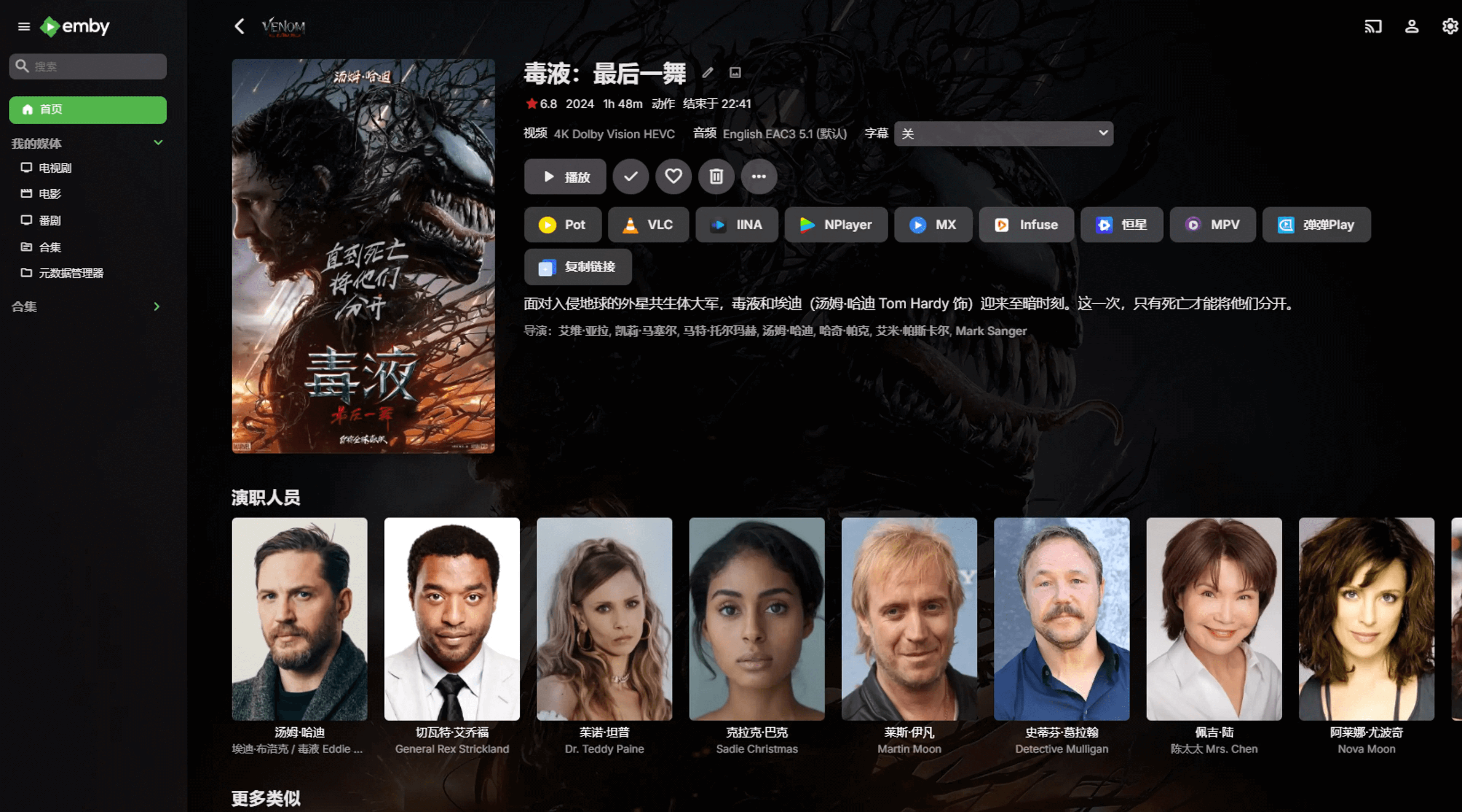 目前用 Emby 自建媒体库,美化后视觉效果很不错